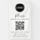 Modern, elegant and simple business card to invite customers to leave you a review using a QR code to direct them to your social media, or website this vertical business card features a custom business logo and additional text for tagline, or contact information. The perfect strategy to build an audience, increase followers, grow your customer base and create community to generate quality advertisement.