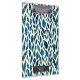 Watercolor inspired blue and green leaves pattern. Personalise name inside grey rectangle at front.