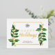 Classy modern horizontal happy holidays busines corporate both side print flat greeting card with a place for your logo featuring elegant classic watercolor christmas leaves and real gold foil pressed frame and happy holidays text on a clean white background. Perfect Christmas Greeting Card for business companies, small business, home business, employees, holiday company or any organisation, the modern design will give your clients the impression of luxury and success. The back side has custom wording. This Happy Holidays card template is ready for your online personalisation. The gold foil can be changed to rose gold or silver.