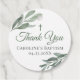 Baptism favour tags featuring a green and grey colour theme and watercolor greenery.