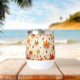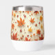 A water bottle decorated to remind you of autumn with a deciduous pattern design