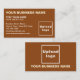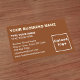 Left aligned style brown business card for your customers or clients to easily find your business address and contact information. Customise it by uploading your business logo, typing your business name, your name, your title, address, phone number, e-mail and website or social media page. Please check the appearance of the front and back sides after uploading logo and typing texts. If the appearance is pleasing to you, you can place your order now. If you need to resize or reposition the logo and texts, please adjust in the design tool. You can also change the background colour, font colour and font style in the design tool.