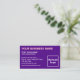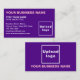 Left aligned style purple business card for your customers or clients to easily find your business address and contact information. Customise it by uploading your business logo, typing your business name, your name, your title, address, phone number, e-mail and website or social media page. Please check the appearance of the front and back sides after uploading logo and typing texts. If the appearance is pleasing to you, you can place your order now. If you need to resize or reposition the logo and texts, please adjust in the design tool. You can also change the background colour, font colour and font style in the design tool.
