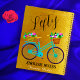 Features a cute bike with floral baskets & gold glitter look