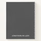 This notebook is designed with left-handed people in mind, featuring the spiral on the right for ease of use. The grey cover is personalised with a white classic block typography name at the bottom, adding a touch of sophistication to your everyday note-taking.