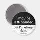 I may be left-handed, but I'm always right! - Funny and humourous saying with an attitude about lefties.