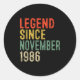 Legend Since November 1986 &#; th Birthday &#; Ye Classic Round Sticker