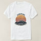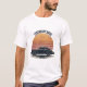 A retro T-shirt design featuring the sleek side profile of the iconic Porsche 911, set against a circular sunset backdrop with warm gradient tones. Thin horizontal lines and a lightly distressed texture add a vintage feel, perfect for fans of classic sports cars and timeless design.