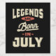 This is the perfect graphic t-shirt for any king or queen who is born in July and who love to let people know when they are born. Show others when legends are born.