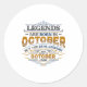 Legends Are Born In October 1992 Womens Birthday C Classic Round Sticker