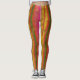 Leggings in multicolored stripes with faux gold stars. The colours are gold, green, orange, and hot pink.