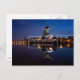 Photo postcard of the windmill 'Salamander' with reflection in the water of the Vliet river with lights on at the beginning of the night in the city of Leidschendam in the Netherlands with a transparant box and the text 'Leidschendam, the Netherlands'.