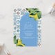 Lemon Baby Shower Invitations by Victoria Grigaliunas feature beautiful watercolor lemon art paired with a classic blue Amalfi tile pattern, creating a fresh and elegant design perfect for celebrating a summer baby shower. These customisable invites allow you to add your personalised details, making them uniquely yours and setting the tone for a joyful and sophisticated event. Ideal for moms-to-be who love vibrant, artistic designs, these invitations will leave a lasting impression on your guests and ensure a memorable celebration.