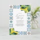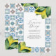 These lemon baby shower invitations features watercolor lemons in shades of yellow with a rust and blue Amalfi tile pattern. The words Lemon Drop is set in a trendy hand lettered calligraphy style typography. Order printed cards or printable stationery. A charming choice for spring and summer baby showers. For more party invitations visit www.zazzle.com/dotellabelle
