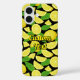 Lemon slices and leaves. Seamless pattern. Custom background colour. Custom text.