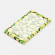 Lemon slices and leaves. Seamless pattern. Custom background colour. Custom text.