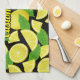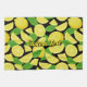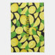 Lemon slices and leaves. Seamless pattern. Custom background colour. Custom text.