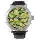 Lemon slices and leaves. Seamless pattern. Custom background colour. Custom text.