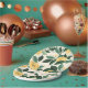 Our lemon chiffon wedding paper plate design captures sophistication & elegance with our original hand-painted watercolor lemon tree with yellow blossoms, flowers and leafy foliage. Crisp citrus yellow shades are paired with deep jade greens to create this fresh wedding design. All of the florals and artwork are meticulously hand-painted by us, to create our unique memorable wedding designs. Personalise the background colour to suit your design preferences.