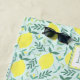 Lemon botanical pattern with a collection of bright canary yellow lemons, falling compound locust leaves, seed pods and sprouts in patina green, blue-green and greenish chartreuse. Set on polar- a very unsaturated very light cold cyan.