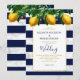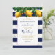 Lemon Botanical Navy White Stripe Marble Wedding Invitation