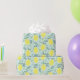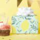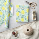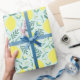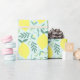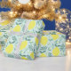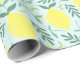 Lemon botanical pattern with a collection of bright canary yellow lemons, falling compound locust leaves, seed pods and sprouts in patina green, blue-green and greenish chartreuse. Set on a very unsaturated very light cold cyan.