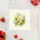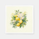 Paper napkins with a lovely illustration of a bouquet of lemons surrounded by white blossoms leaves and sprigs.