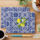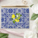 Lemon branch and blue mosaic wedding envelope