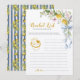 Inspire meaningful moments with this Bride & Groom Bucket List Bridal Shower Game, beautifully styled in an elegant Mediterranean lemon floral theme. Featuring soft watercolor lemons, flowing greenery, delicate florals, and warm yellow accents, this game invites guests to share fun ideas, dreams, and adventures for the couple’s future together. It’s a heartfelt activity that encourages conversation and connection, making it perfect for summer, garden, citrus, or destination bridal showers. Easy to play and visually refined, it also doubles as tasteful table décor. Coordinate it effortlessly with matching games, signs, and stationery from the She Found Her Main Squeeze Lemon Bridal Shower collection for a cohesive and memorable celebration.