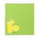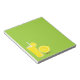 Lemon character standing next to lemonade notepad