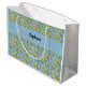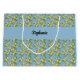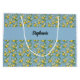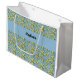 Lemon Citrus Blue Tile Pattern Monogram Name Large Gift Bag