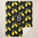 Lemon citrus monogram sherpa blanket. Modern summer lemon pattern with black background. Easy to change the monogram and name.