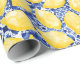 Lemon Citrus Watercolor Blue Mediterranean Tile Wrapping Paper