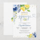 Celebrate love and friendship with this elegant lemon floral bridal shower invitation. Featuring watercolor lemons, lemon slices, and delicate blue and white flowers with gold accents, this design blends rustic charm with modern sophistication. Perfect for honoring the bride-to-be, this customizable invite sets the tone for a joyful gathering. Personalize with event details to create a keepsake guests will treasure.