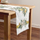 Here's a lovely table runner from our Lemon Bliss Collection featuring a pretty lemon (fruit and blossom) with gold ribbon print, repeated throughout the length of the product. Other sizes also available. 100% cotton.