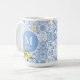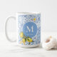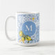 Lemon fruit monogram, blue tile coffee mug