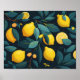 Lemon garden pattern. Yellow tropical citrus fruit Poster