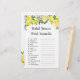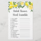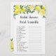 These adorable Bridal Word Scramble Game Cards are a great way to kick off the fun at your Bridal Shower & guaranteed to be a huge hit! Simply pass them around during the Bridal Shower where guests will have fun unscrambling the 15 wedding-related words! First person with the correct answers wins! Answer Key is included on the back. The design features bright watercolor lemons with greenery and faux gold foil splatters.