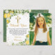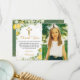 Lemon Greenery Gold Cross First Communion Photo Thank You Card