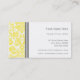 Business cards in elegant and vintage floral damask pattern in modern bright yellow, white and grey. Customisable with your contact details, stylish and contemporary. Contact us for a custom colour.