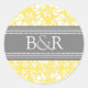 Custom monogram envelope seals for wedding, in elegant bright canary yellow, grey and white classic floral damask vintage pattern, the perfect addition to your save the date card or wedding invitation envelopes, available in many matching wedding products. Contact us for a colour change request.