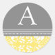 Custom monogram envelope seals for wedding, in elegant bright canary yellow, grey and white classic floral damask vintage pattern, the perfect addition to your save the date card or wedding invitation envelopes, available in many matching wedding products. Contact us for a colour change request.