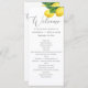 Celebrate your big day with this lemon wedding program accented by watercolor citrus and lush greenery, a design that brings fresh orchard charm to your stationery suite. Created in a two sided layout, this card combines elegance and function, making sure your guests feel welcomed and informed. The front side presents the complete order of service - from preludes and readings to vows, blessings, and recessional. The back side introduces your loved ones with a detailed wedding party list. Perfect for couples planning a summer garden wedding, rustic vineyard celebration, seaside ceremony, or Amalfi Coast inspired event. This citrus orchard program sets a warm, joyful tone.