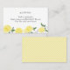 Add a fresh and cheerful touch to your bridal or baby shower with this lemon-themed registry information card, perfectly sized to tuck into invitations. Featuring watercolor lemons and greenery with clean, modern typography, this card is a charming and practical way to share gift registry details with guests. Its petite business card size makes it ideal for mailing and easy for guests to keep on hand. A lovely addition to any citrus, garden, or summer-themed celebration.