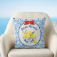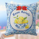 The bowl of lemons is decorated with a toile de jouy style pattern, and the border is an azulejo style simulated tile, or some might call it Chinoiserie or toile de juoy, similar to what you might see in Italy, Greece, Turkiye, or Portugal. This lovely pillow will bring a touch of sunny yellow and blue summer to your holiday decor, regardless of the weather outside.