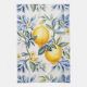 Blue and white Mediterranean tile lemon kitchen towels. Beautiful painted lemons background. You can add text to personalise.