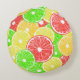 Lemon, orange, grapefruit and lime slices pattern round cushion