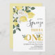 Sweet our main squeeze is turning one birthday invitation featuring a large white floral and lemons arrangement on the top corner of the design. This girl's our main squeeze first birthday invitation also features a faux gold one and some editable modern calligraphy text.