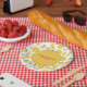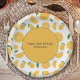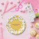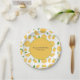 Paper Plates with a slice, half and full lemon pattern. A customisable text is available at the centre on a yellow background. A fresh decoration for a birthday party, a wedding, a housewarming party, a retirement, a bachelorette party, etc.