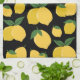 Lemon Pattern Retro Fruit Yellow On Black Tea Towel